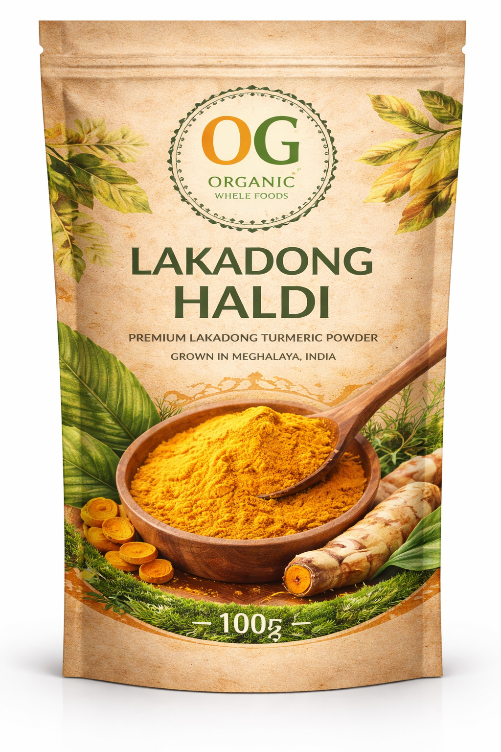 OG Organic Whole Foods Lakadong Haldi Powder offers a premium turmeric experience with natural taste, strong aroma, and rich color. Sourced from the Lakadong region of Meghalaya, this turmeric is popularly chosen for both culinary and traditional uses. Add it to curries, soups, detox drinks, and warm milk for a wholesome everyday ingredient. Its premium packaging helps retain product quality and makes it convenient to store and use.